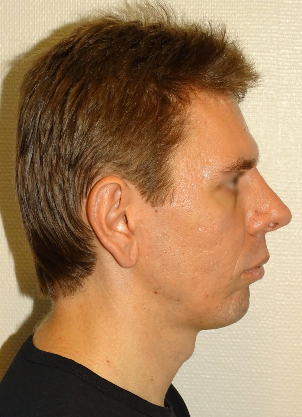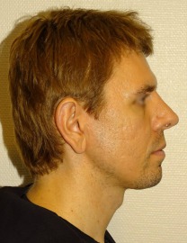 Vorher Diagnose:Mandibuläre Retrognathie, Retrogenie, Lippenschlussinsuffizienz Nachher Therapie:Minimalinvasive hohe BSSO, Chin Wing Osteotomie mit Beckenkamminterponat