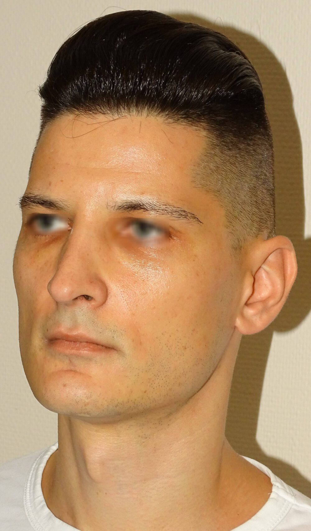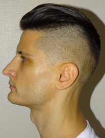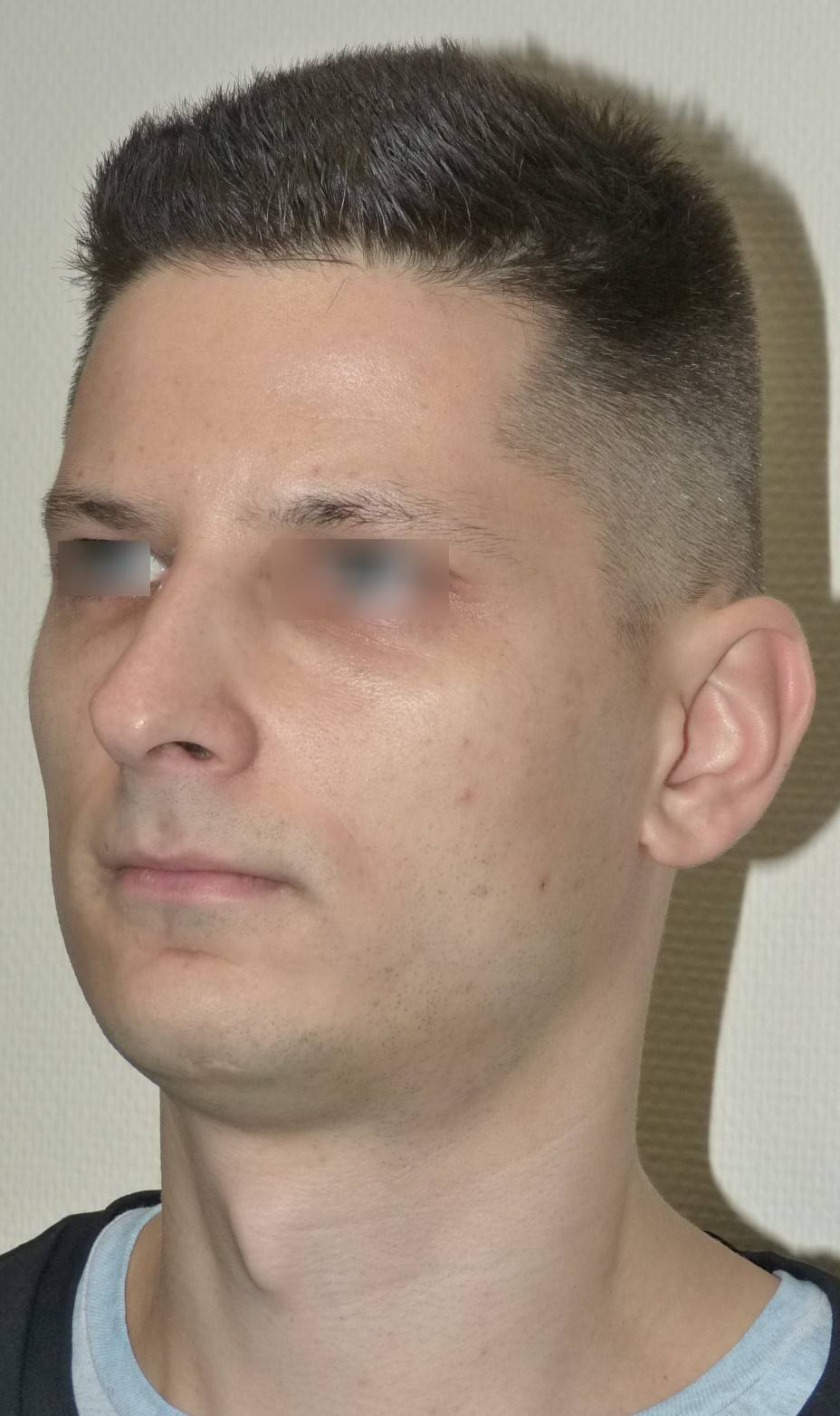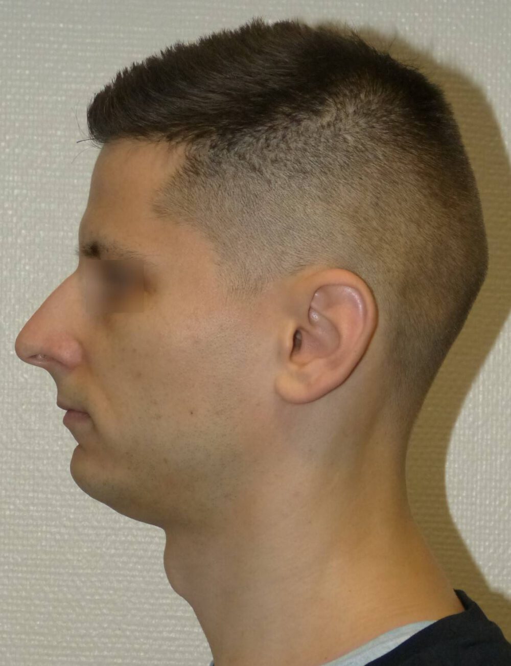 Vorher Diagnose:Mandibuläre Retrognathie, Nasenatmungsbehinderung Nachher Therapie:Minimalinvasive hohe BSSO, Chin Wing Osteotomie mit Beckenkammtransplantat, Funktionelle Nasenoperation