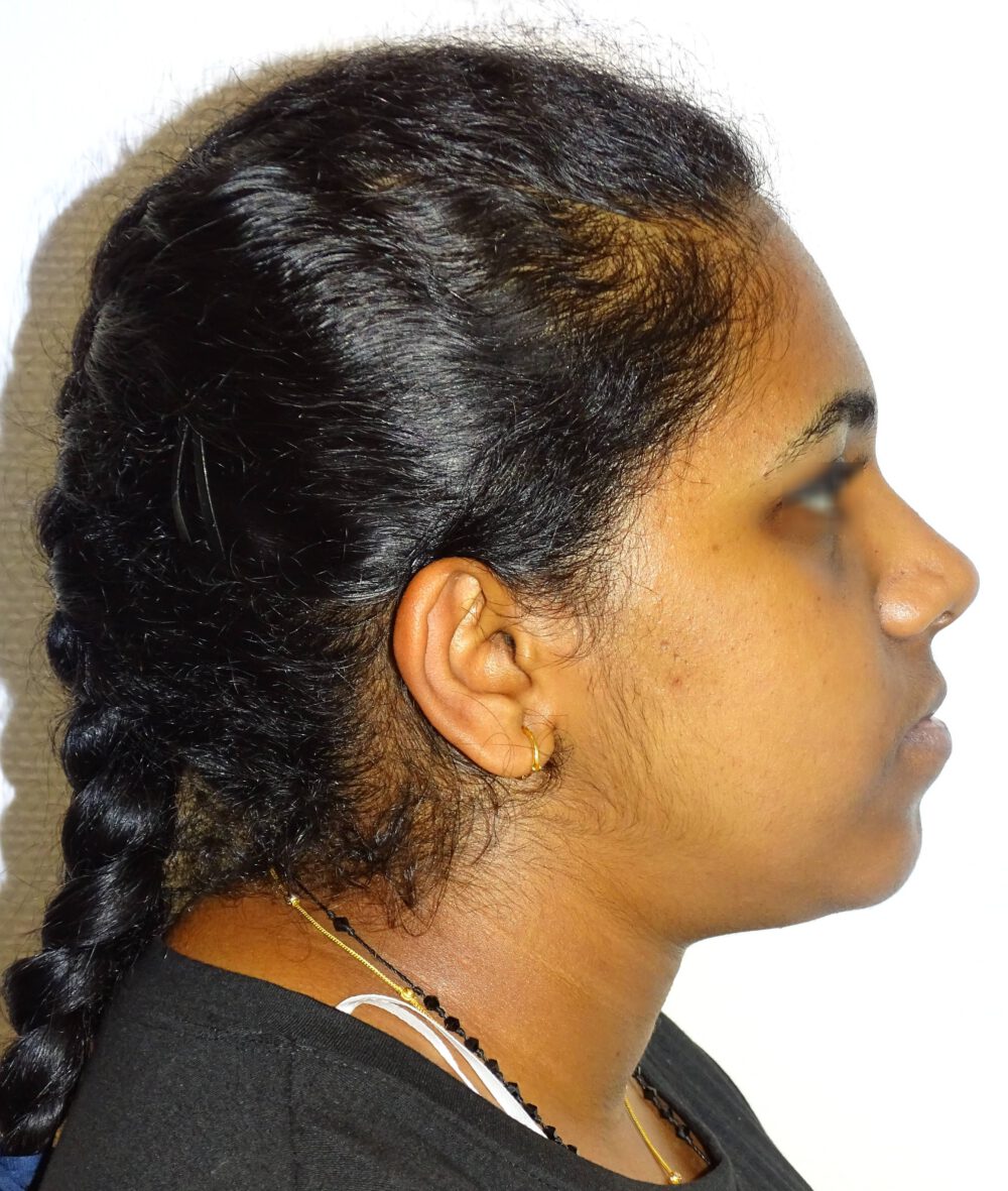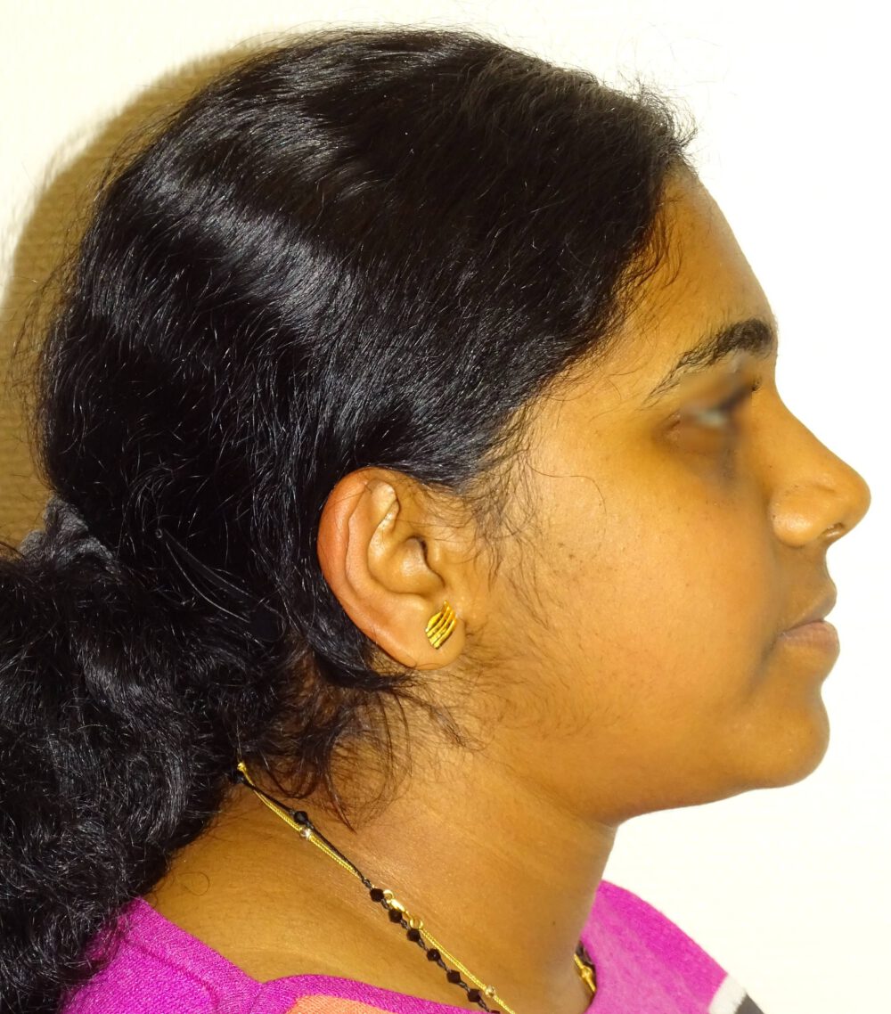 Vorher Diagnose:Mandibuläre Retrognathie, Retrogenie, Lippenschlussinsuffizienz Nachher Therapie:Minimalinvasive hohe BSSO, Chin Shield Osteotomie mit Beckenkamminterponat
